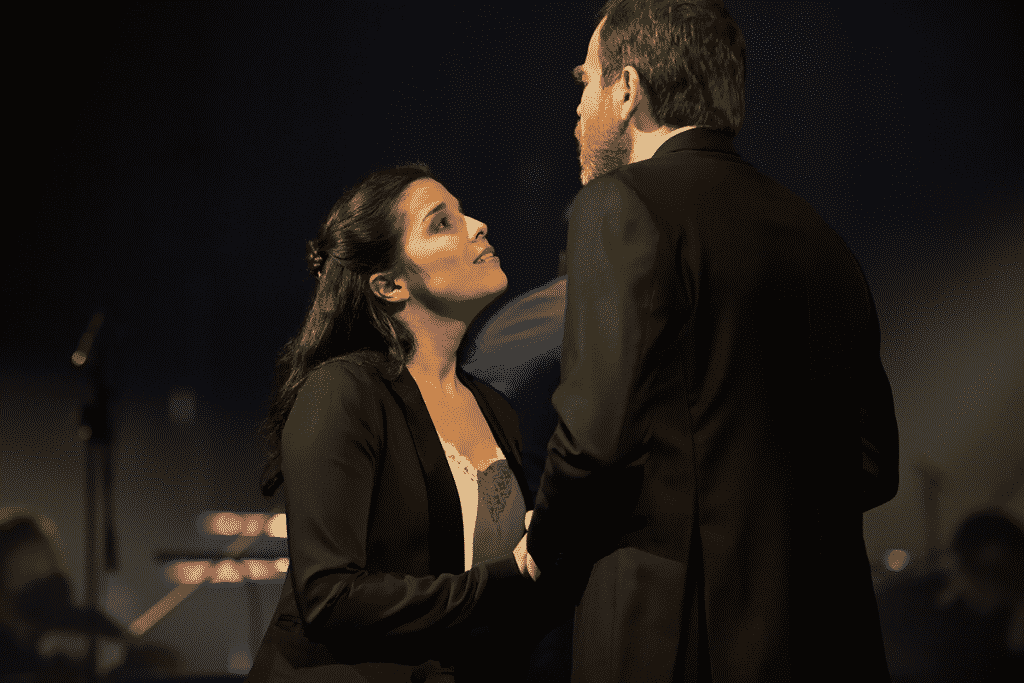 Dans le registre romantique, nous sommes particulièrement charmés par les extraits de Roméo et Juliette (Gounod), de Fantasio (Offenbach) et de Lakmé (Delibes) : une même souplesse de la ligne mélodique, calquée sur le vers, affleure. Si tous les artistes de la soirée sont impliqués et talentueux, la palme revient au tandem des chanteuses Marianne Crebassa  et Jodie Devos (soprano). La mezzo a recréé le rôle travesti du bouffon Fantasio d’Offenbach, dans la mise en scène de Thomas Joly à l’Opéra-Comique (2017). Elle projette  un halo poétique dans sa ballade à la lune « Voyez dans la nuit brune » ou bien affiche son désenchantement amusé dans l’extrait suivant. La soprano, quant à elle, excelle dans le legato intime de l’air d’Elsbeth (« Voilà la ville en fête », Fantasio), autant que dans les couleurs de timbre irisées lors du duo des fleurs de Lakmé. Ici, la sororité incarnée par les interprètes, partageant une flexibilité vocale à toute épreuve, est juste impressionnante ! Si l’ampleur de Jodie Devos est légèrement en dessous du requis pour le duo d’amour de Roméo et Juliette (« Ange adorable »), le couple formé avec le ténor François Rougier demeure très émouvant. Tel n’est pas le cas du rôle de Mercutio dans la Ballade de la reine Mab … Égalant le talent des deux chanteuses, le baryton Jean-Sébastien Bou convainc au fil des divers ensembles. Avec une prononciation exemplaire, il excelle dans sa prestation soliste d’Hamlet de Thomas (« Comme une pâle fleur »), empreinte de noblesse. Dans l’air de Cinq-Mars de Gounod, le chant frémissant d’Anna Reinhold fait suite à un prélude instrumental d’une couleur originale (bois aigus).
