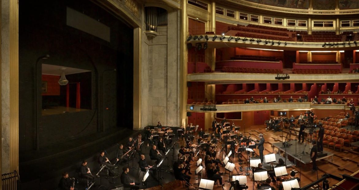 Capté au Théâtre des Champs Élysées pendant les deux générales des 3 et 5 mars 2021, le spectacle d’Olivier Py associant La voix humaine de Poulenc à une commande passée à Thierry Escaich, Point d’orgue, et coproduit avec Dijon (qui aurait dû le présenter à la fin de ce mois de mars), Bordeaux et Tours devra, comme tant d’autres spectacles en cette période de crise sanitaire, se contenter pour le moment d’un public confiné derrière son écran, avec une mise en ligne en VOD sur le site du Théâtre des Champs Élysées prévue en début mai.