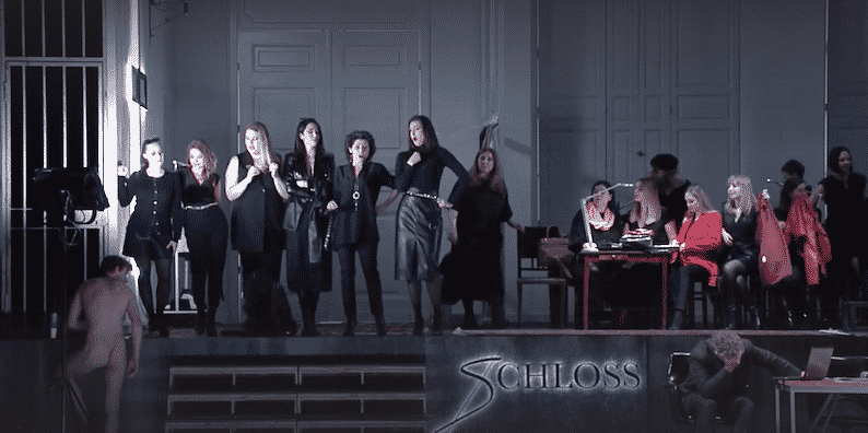 Amfortas est l’un de ces hommes, et comme si la blessure (qui ne guérit jamais) ne suffisait pas, il en reçoit d’autres dans une vaine tentative de suicide. Et puis il y a Kundry, une journaliste et photographe qui visite la prison et qui ne semble pas tant s’intéresser aux conditions sanitaires du lieu qu’au physique des détenus. Nous la voyons dans le deuxième acte, celui du château de Klingsor, en tant que directrice de Schloss, un magazine de life style où ne travaillent que des femmes (les « vierges enchantées »), en quête permanente de modèles masculins.