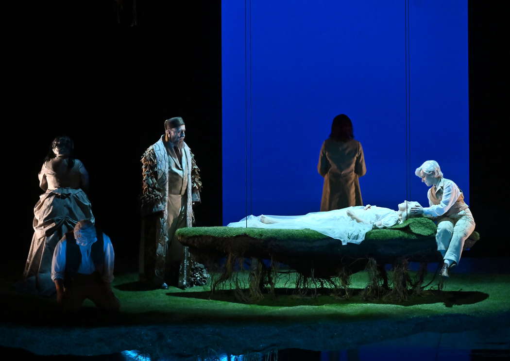 Vincent Le Texier campe un Arkel aux interventions profondes, d’une voix et d’une présence majestueuses. Inutile de préciser que l’on ne perd pas une syllabe de son texte. Ce qui n’est malheureusement pas le cas du Golaud de Michael Bachtadze, dont la voix sombre a quelques soucis avec la langue française. Sylvia Fregato incarne un petit Yniold en double-enfant de Pelléas, vêtu du blanc de l’innocence apeurée.