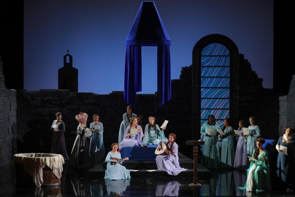 Pour servir d’écrin à cette distribution homogène et à cette interprétation endiablée du Comte Ory, l’Opéra-Théâtre de Metz a confié à une équipe entièrement féminine le soin de monter cette production d’une œuvre qui, sous l’apparence d’une farce rabelaisienne, pose des questions aussi essentielles que celles du désir féminin et de l’hypocrisie religieuse.