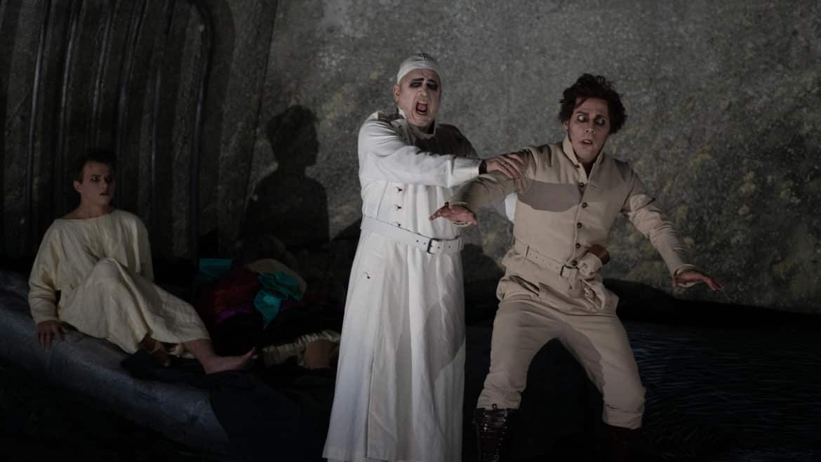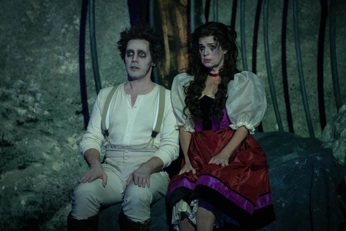 Beaucoup à dire, d’autres en diront sûrement plus, et pourtant à trop en mettre à lire, on risque parfois l’ennui. Question d’absence d’empathie et de l’impossible identification aux personnages ou aux situations… Ce ne sont pas les décors incroyables et les superbes costumes signés Emmanuel Charles et David Belugou qui aideront à la projection. Nous sommes dans un autre monde, une chambre étonnante, déstructurée, désaxée, oppressante. Tim Burton n’est jamais loin et avec lui son lot de morbide, de macabre, de gothique et de fantastique. Les oripeaux, d’une fausse poésie, sont une rencontre improbable entre la Commedia dell’arte et le cinéma expressionniste allemand des années 30. Et ces animaux bizarres, on jurerait avoir entendu rire dans la salle. Et ces lumières tranchantes et ces ombres crues signées Joël Fabing, c’est déjà le rasoir de Wozzeck qui dessine. Beaucoup à voir, encore.