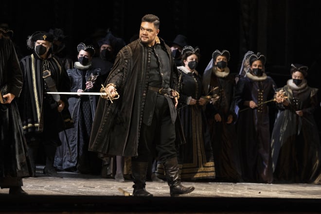 Dans un récent compte rendu de L’elisir d’amore à l’Opéra Bastille, nous souhaitions que Pene Pati incarne au plus vite le personnage d’Edgardo. C’est désormais chose faite pour ce ténor qui débute à la fois dans le rôle, à Naples et en Italie. Il est des interprètes dont la présence magnétique catalyse d’emblée l’attention du spectateur. Le chanteur samoan est de ceux-là et apparemment il a aussi le pouvoir d’entraîner ses collègues vers les plus hauts sommets. Dès son duo avec sa bien-aimée, il fait preuve d’une fougue qui transporte également sa partenaire dans une exécution digne de l’âge d’or du melodramma, leur entente touchant au sublime dans la strette (« Verranno a te sull’aure »). A-t-il beaucoup écouté Pavarotti ? Si quelques inflexions dans la voix rappellent de temps en temps le timbre de Big Luciano, c’est davantage par une diction exemplaire que ce jeune artiste semble vouloir le suivre, sans nullement tenter de l’imiter. Pendant le sextuor du finale central, c’est lui qui est au centre de la scène – et c’est probablement que Donizetti l’a voulu ainsi – et il va jusqu’à se distinguer par l’élégance de sa gestuelle. Le chef applaudit, ne reculant nullement devant l’une de ces mauvaises habitudes de certains spectateurs qui consiste à interrompre l’action au milieu d’un numéro musical. Dans l’épilogue, notre Edgardo atteint une telle aisance qu’il paraît d’abord dialoguer avec le chœur, avant d’entamer la reprise de sa cabalette par un pianissimo à donner le frisson, succédant aux prouesses vocales de l’attaque. Si nos vœux se réalisent, espérons l’entendre bientôt dans Arturo des Puritani.