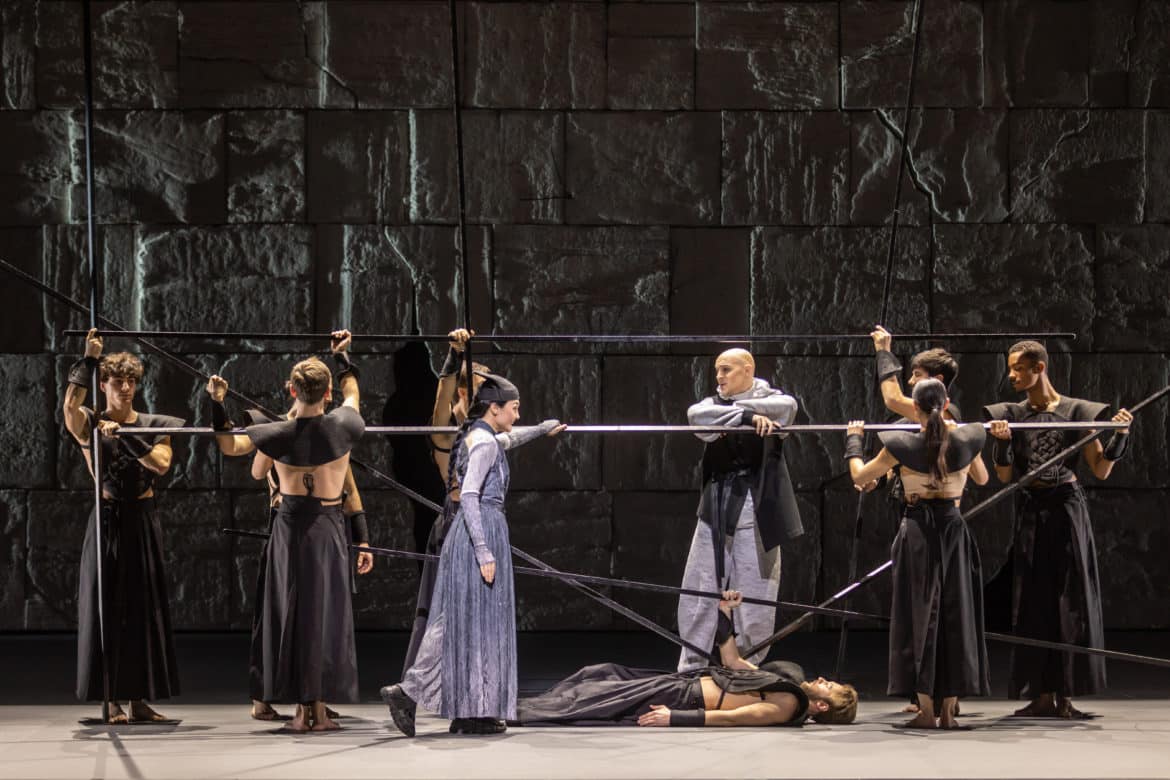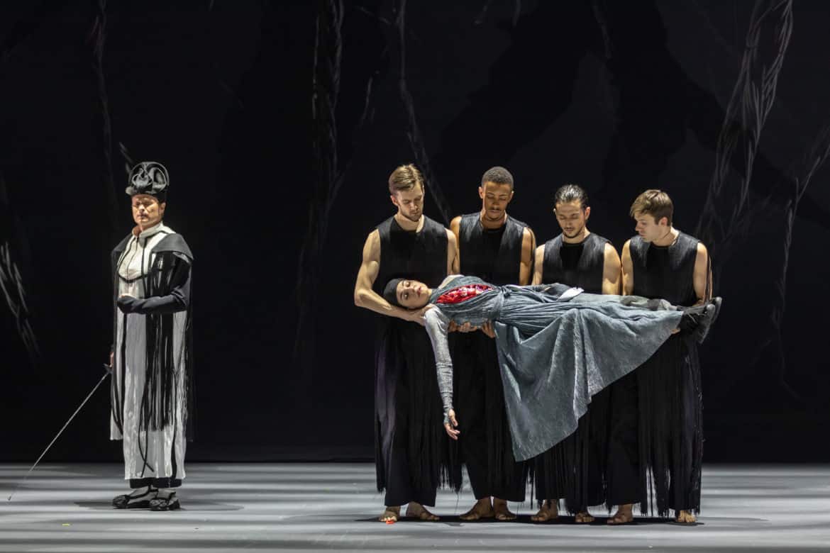 Angelin Preljocaj, qui signe là son premier spectacle lyrique, l’a parfaitement compris, mobilisant son langage reconnaissable pour dupliquer la déclamation, jusque dans le jeu des chanteurs. Les effets d’échos ne se limitent pas à un simple dédoublement du soliste par un seul danseur. Certaines séquences multiplient les présences chorégraphiques derrière le chant, prévenant ainsi toute gangue psychologique dans cette peinture des passions. La virtuosité et, parfois, l’énergie du geste, n’oublie jamais une intense expressivité, investie admirablement par le Ballet du Grand-Théâtre de Genève, même si le procédé peut parfois se faire sentir sur la durée, sans toutefois se laisser piéger dans un systématisme que l’on pouvait deviner dans le Cosi fan tutte revu par Anna Teresa De Keersmaker – où l’intention combinatoire était certes tout autre.