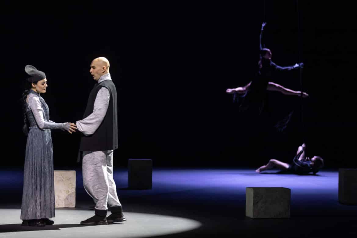 Dans le rôle-titre, Mathew Newlin condense sans doute les primats herméneutiques du spectacle. Si le timbre du ténor américain n’est pas sans menues ingratitudes, son élan déclamatoire, d’une constance sans faille au fil d’une incarnation au demeurant exigeante, impose une présence souveraine dans les méandres des failles affectives du personnage, qui s’affirme également dans une performance corporelle exceptionnelle chez un chanteur. En Cybèle, Giuseppina Bridelli privilégie la couleur d’un mezzo à l’intonation sombre, façonnant une autorité mêlée d’une acuité certaine de la sensibilité. Plus que le rayonnement vocal, circonscrit à sa typologie, c’est l’évolution et les ressacs du sentiment qui retiennent l’attention, et que l’on retrouve dans l’incarnation de Sangaride par Ana Quintans, dont l’antagonisme s’entend d’abord dans la naturelle clarté d’une ligne, qui s’oppose à l’émission plus charnue de sa rivale.
