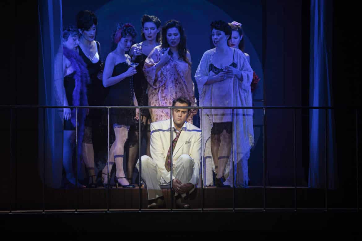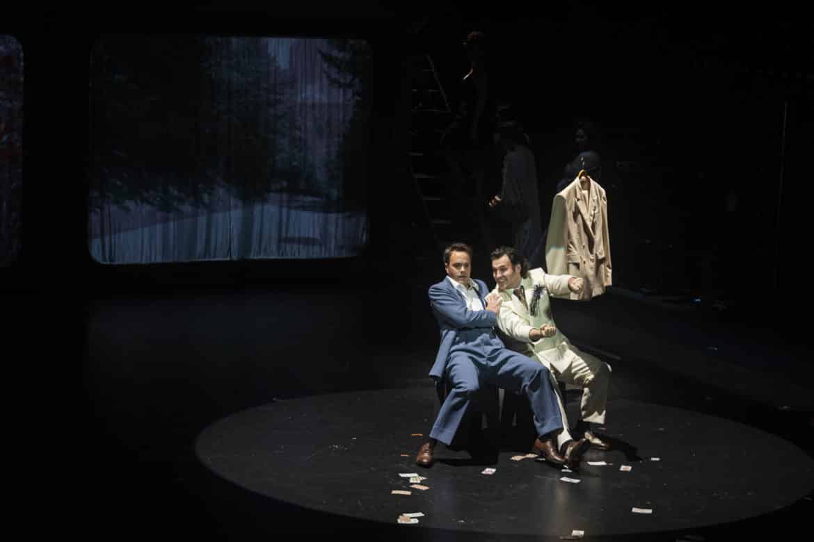 Au milieu de l’apparente insouciance des années 50, chacun des personnages promène avec jubilation ses petites aspirations et ses grandes défaites. Le Tom Rakewell de Julien Behr est un anti-héros magnifique. En cherchant à échapper à sa province et à un amour aussi étouffant – nous ne dévoilerons rien ici de l’usage glaçant d’un certain oreiller – qu’excitant, ce candide dilapide avec talent son héritage inespéré dans le jeu, les maisons closes et autre projet industriel foireux. Si la qualité et la maîtrise du chant du ténor n’étonnent guère, on reste subjugué par l’incarnation théâtrale de l’acteur. Contrasté, dépressif, mélancolique, son libertin est aussi effrayant qu’émouvant, tout emporté qu’il est dans les rouages d’une société qui le dépasse et l’écrase.