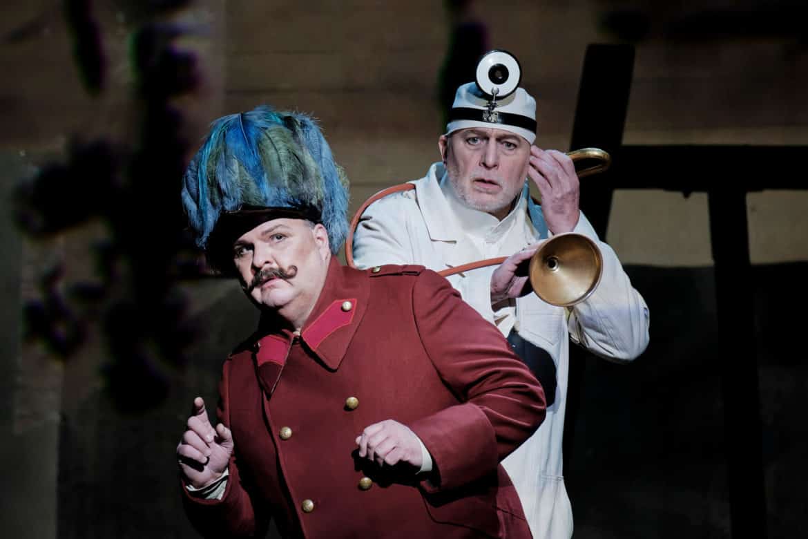 Graphiquement puissante, la vision de William Kentridge, qui co-signe cette mise en scène avec Luc de Wit, prend le risque d’étouffer la petite histoire du quotidien de Wozzeck, faite de brimades, d’humiliation et de déception, sous le poids de la grande Histoire. Le drame universel rejoint pourtant le drame individuel. Wozzeck sera l’objet des expérimentations du Docteur, du mépris du Capitaine et de l’orgueil du Tambour-major. Marie, seule fleur de sa vie, trahira sa confiance. Wozzeck, mouton broyé dans la machine du pouvoir va tuer Marie et l’enfant sera orphelin. Tout dans les circonstances explique le drame et la direction d’acteur, précise et inventive, met à nu les rouages de cet inéluctable.