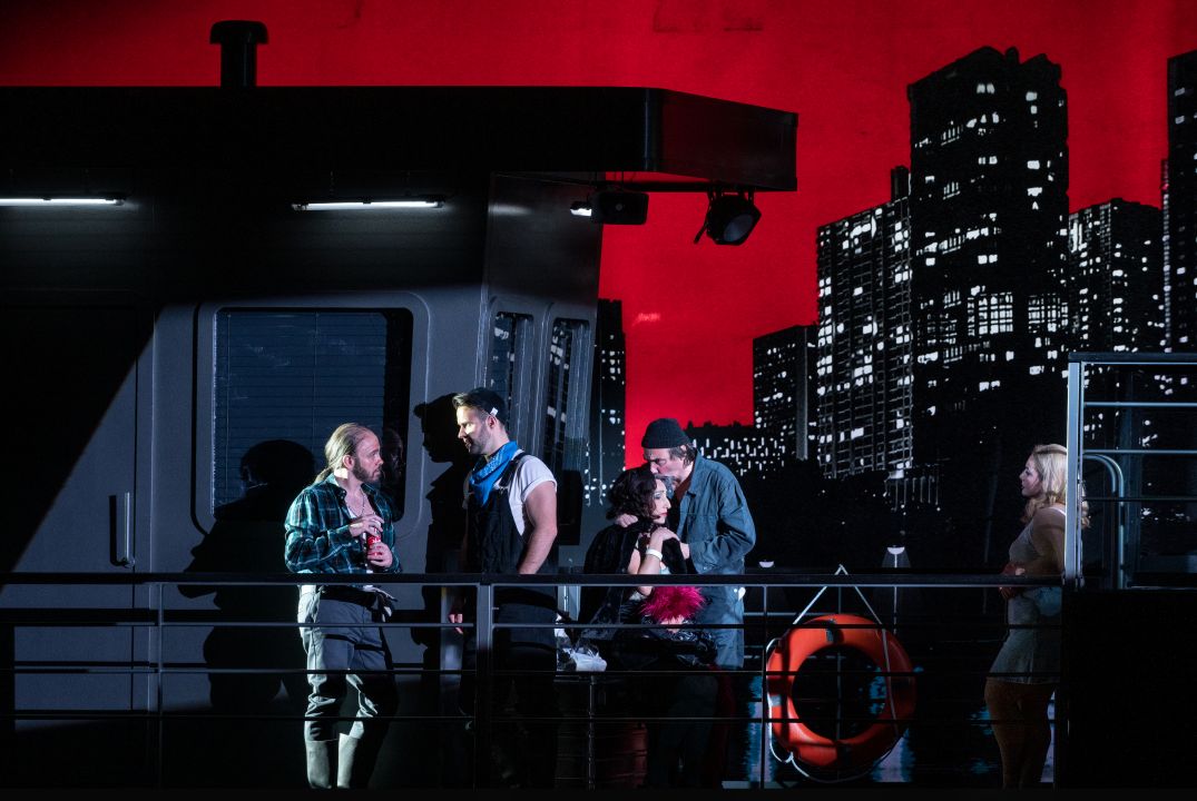 monologue de Michele, sont en fait… Rinuccio et Lauretta, que l’on retrouvera dans le même jacuzzi au dernier opus du Triptyque ! Racontés ainsi, les rapprochements entre les trois opéras peuvent paraître artificiels et forcés, mais il sont en réalité réalisés avec naturel et fluidité et confèrent à cette œuvre disparate une étonnante cohérence !