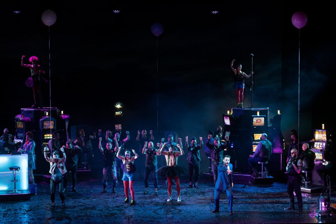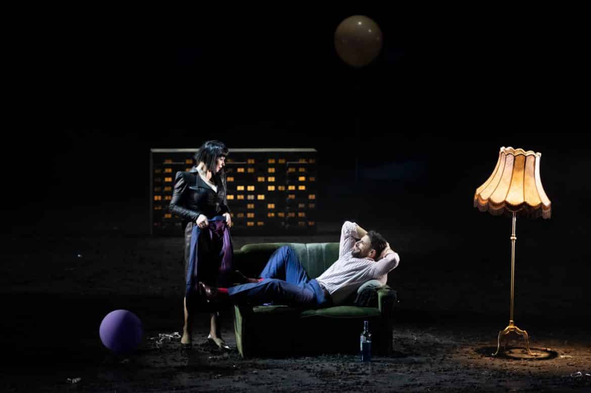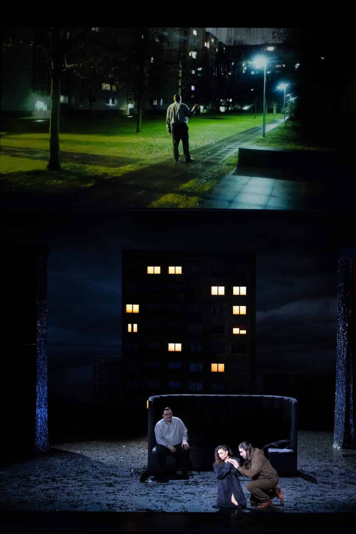 Donné en ouverture de son « Festival », le Rigoletto monté par Axel Ranisch pour l’Opéra de Lyon a hélas fait un peu l’effet d’un pétard mouillé. La transposition vers notre époque – et plus précisément vers une morne banlieue composée de barres d’immeubles – est devenue un lieu commun, et le metteur en scène allemand, lorsqu’il ne sait trop quoi demander aux chanteurs, semble avoir pour principale solution d’occuper le plateau par des vidéos qui racontent une autre histoire, version banalisée du drame hugolien. Dans ce Rigoletto lyonnais, il n’y a finalement plus un bouffon, mais deux, trois, voire quatre. Dans le monde de jeux d’arcade et de pole dance sur lequel règne le Duc, au milieu d’une faune mâle arborant coquille de protection par-dessus le jean, Rigoletto trouve un premier alter ego en la personne de Monterone, vêtu exactement comme lui, manière de montrer que la fille du bouffon sera consommée par le Duc comme l’a été la fille du comte. Mais ça ne suffit pas : avant le début de la représentation, un film nous montre un homme visionnant un DVD de Rigoletto et s’apprêtant à se suicider, l’individu en question apparaissant ensuite en chair et en os sur le plateau pour ne plus le ne quitter un seul instant, tandis que d’autres vidéos nous raconteront tout son parcours, qui relève davantage du grotesque que du sublime. La belle idylle censée avoir uni Rigoletto à son épouse défunte est en fait une histoire bien plus sordide, et Gilda n’est même pas réellement la fille du bouffon. Les projections reviennent si fréquemment qu’elles finissent par tourner au remplissage, comme ces chorégraphies qui permettent de meubler « Questa o quella » ou « La donna è mobile ». À la fin, Gilda se suicide, tandis que le Duc est repris en mains par son épouse visiblement bien plus âgée que lui. Pourquoi pas, mais d’autres productions ont su actualiser l’œuvre sans la dépouiller de sa grandeur ou de sa poésie.