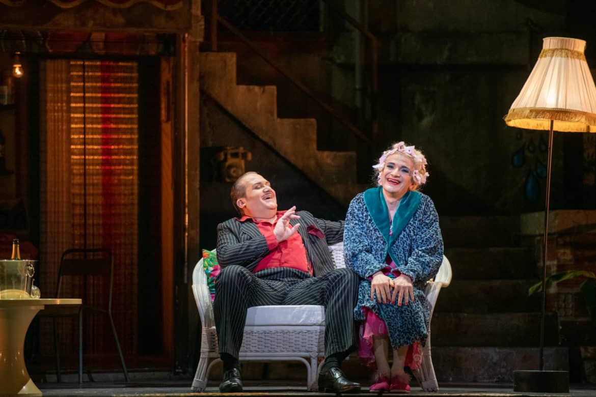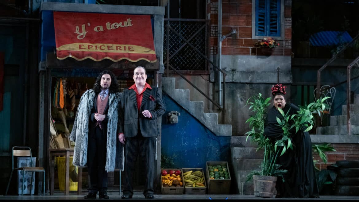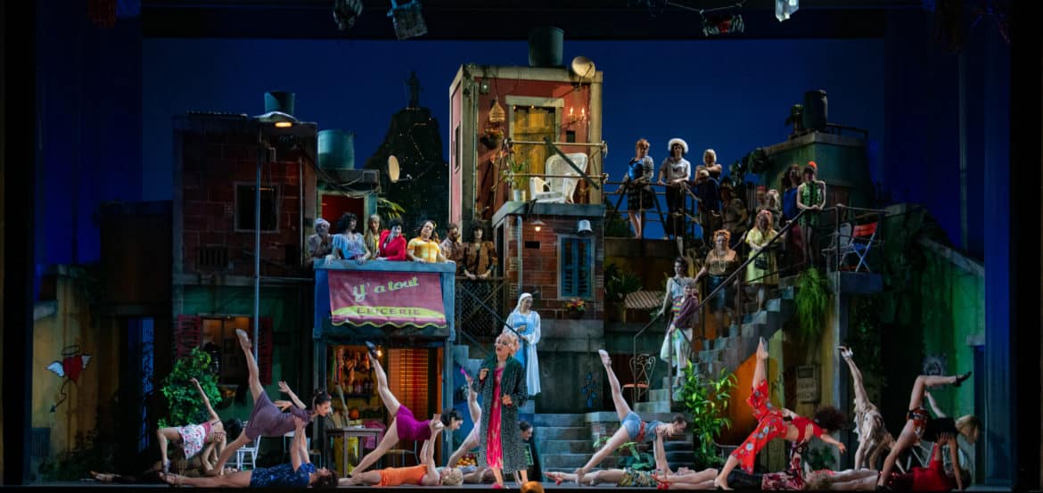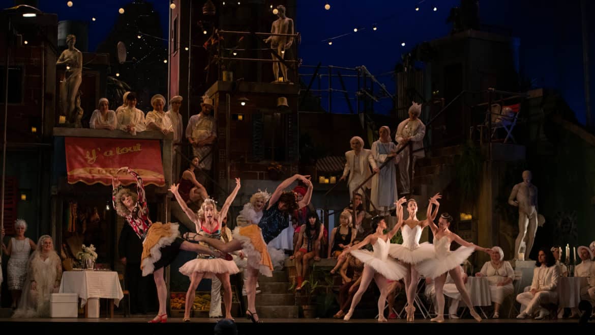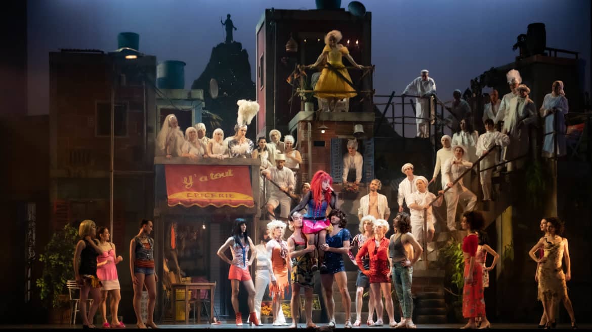 Du diptyque ballet/bouffon, il aurait été dommage que la danse cède son rôle central à la farce. Aucun risque ici. En terme d’inventivité dansante, le chorégraphe Kader Belarbi en remontre à notre duo de metteurs en scène. Music-hall, cabaret, comédie musicale ou ballet classique se croisent et s’entrechoquent. Le Ballet du Capitole met ses très belles qualités techniques et un sens certain de l’autodérision au service de chorégraphies subtilement déjantées et c’est un plaisir de chaque instant. Saluons également l’impressionnant décor alla West Side Story signé Hernán Peñuela et habilement mis en lumière par Patrick Méeüs.