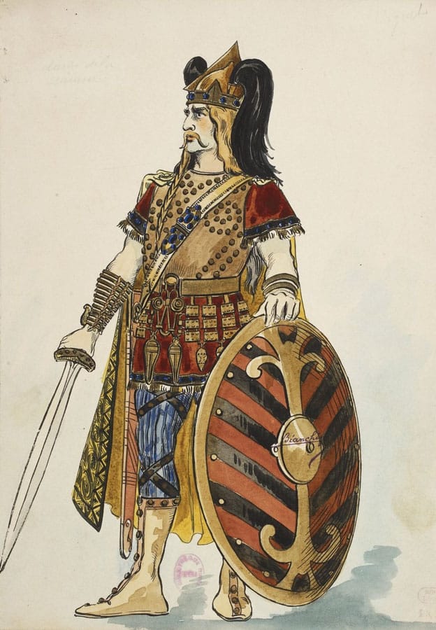 Prévu pour les représentions au Théâtre antique d’Orange, artisan d’une latinité militante lors de ses Chorégies, l’opéra en 3 actes et un prologue (avec récitant) narre l’affrontement entre barbares teutons et gallo-romains à Orange. Figure de l’interculturalité avant la guerre de 1870, le compositeur devenu patriote (voir la devise Ars gallica de la Société nationale de musique) accuse son militantisme anti-allemand dans les tribunes de L’Écho de Paris, de 1914 à 1915.