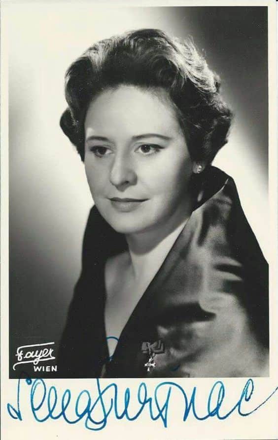 Sena Jurinac est née en Bosnie-Herzégonine le 24 octobre 1921. Elle étudie et fait ses débuts en Croatie (dans le rôle de Mimi au Théâtre National Croate, en 1942). Deux ans plus tard elle est engagée à l’Opéra de Vienne où elle mènera une brillante carrière pendant près de quarante ans. Elle devint ainsi l’une des plus célèbres représentantes de l’âge d’or de cette institution après-guerre.