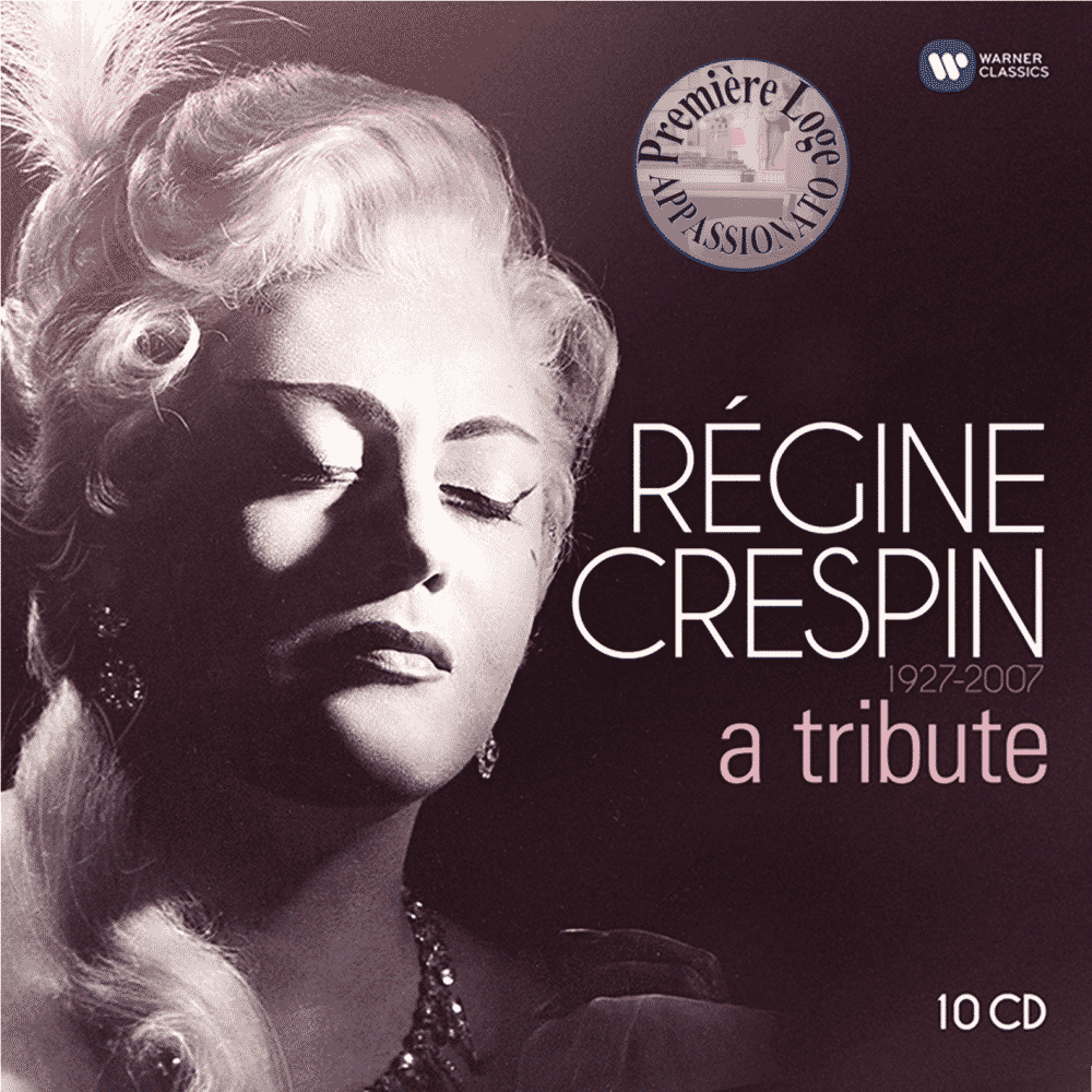 Le coffret de 10 CD paru chez Warner Classics pour célébrer les dix ans de la disparition de la chanteuse (survenue en 2007) est intitulé tout simplement : A tribute. Il y a nécessairement quelques frustrations et interrogations : difficile d’imaginer un portrait de Crespin sans une seule note de sa Maréchale ni de sa Brünnhilde… Et pourquoi n’avoir retenu aucun extrait du double album Prima donna in Paris (DECCA) ? Certes, l’album fut gravé en 1971, pendant une période de crise vocale, alors que Crespin s’orientait de plus en plus vers le répertoire de mezzo ; et la chanteuse, dans ses mémoires (À la scène, à la ville, chez Actes Sud), ne se dit pas très fière de ces enregistrements. Ils comportent cependant quelques belles surprises, notamment dans le répertoire léger : Felicity Lott n’a-t-elle pas l’habitude de déclarer que Crespin avait « un sourire dans la voix » ? Il faut enfin une bonne paire de lunettes pour pouvoir lire les dates d’enregistrements, pourtant particulièrement importantes pour suivre le cheminement d’une voix qui évolua beaucoup, passant du statut de soprano lyrique (et même de soprano colorature : Crespin raconte avoir chanté Lakmé au cours de ses études !) à ceux de soprano dramatique, de mezzo, voire de contralto dans ses dernières années.