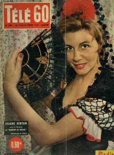 Pour Le Barbier de Séville, ce fut différent : quelques mois plus tard, j’étais en possession de l’intégrale d’où étaient tirés les fameux extraits qui m’avaient tant charmé : il s’agissait d’un triple album EMI Pathé Marconi. Jules Gressier, qui dirigeait l’essentiel des albums d’opérettes également parus chez EMI et dont j’avais entrepris la collection, dirigeait les chœurs et l’orchestre du Théâtre National de l’Opéra-Comique, et je retrouvais certains noms que je connaissais déjà, notamment Michel Dens, le Pippo de mon tout premier disque lyrique, La Mascotte d’Audran, et Liliane Berton, l’Oreste de ma sélection de La Belle Hélène, dans laquelle chantaient également Deva Dassy et Claude Devos. (En surfant sur le net, je la découvre en couverture d’un numéro de Télé 60, où elle pose en costume de Rosine. Heureuse époque que celle où une chanteuse lyrique pouvait faire la Une des magazines télé !)
