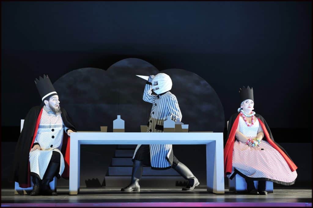 Quant à l’univers hybride du conte Poil de Carotte, il requiert des comédiens-chanteurs accomplis, telle la mère Lepic (Sylvia Bergé, sociétaire de la Comédie-Française), aptes à jongler avec le style de cabaret ou celui lyrique, selon les saynètes. Cependant, la palme de l’originalité ne revient-elle pas au rôle de Bill (alias William Shakespeare) dans Roméo et Juliette ? Ce comédien et meneur de jeu (rôle parlé) possède un timbre identitaire … celui de la clarinette de l’orchestre !