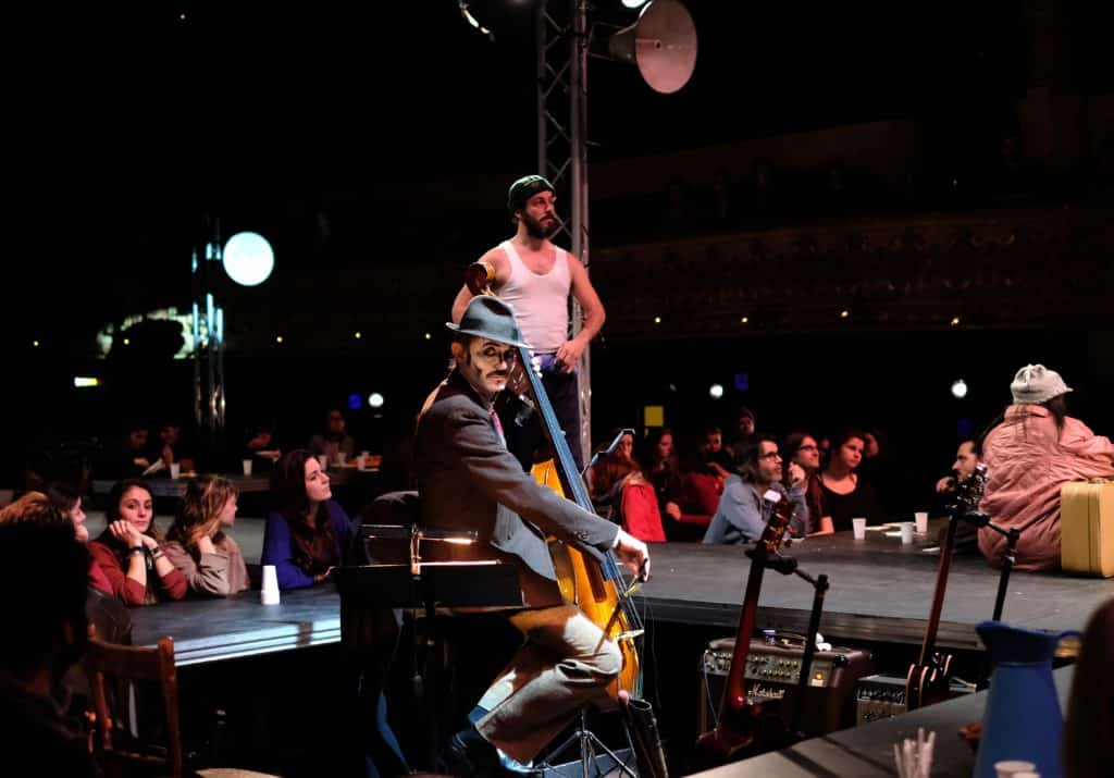 Bien après l’émergence du théâtre musical (au festival d’Avignon après 68), le genre s’invite sur la scène montpelliéraine : la Soupe populaire mêle intervenants et publics sur le plateau, partageant un verre ou un bol.