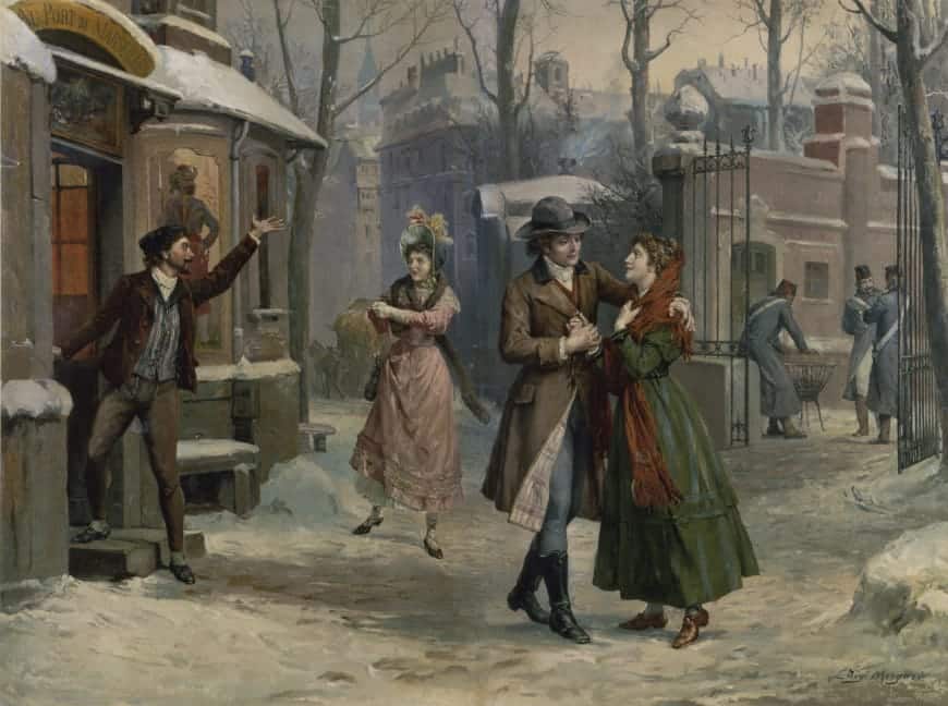 Rodolphe et Mimi (bras-dessus, bras-dessous, se dirigeant vers la porte) : « Amore ! Amore ! Amore ! »