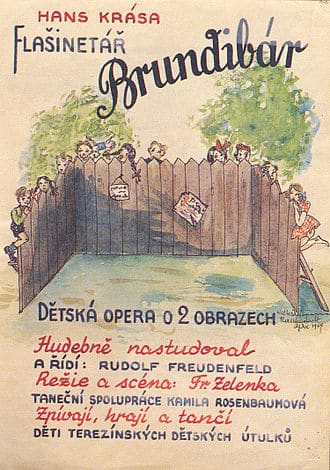 . Brundibar d’Hans Krása (1942) : cet opéra pour enfants du compositeur germano-tchèque est clandestinement créé par les enfants d’un orphelinant de Prague, avant d’être repris dans les camps de déportation (Theresienstadt, 1944). L’extrait est ici chanté par le chœur d’enfants du Juillet musical de Saint-Hubert :