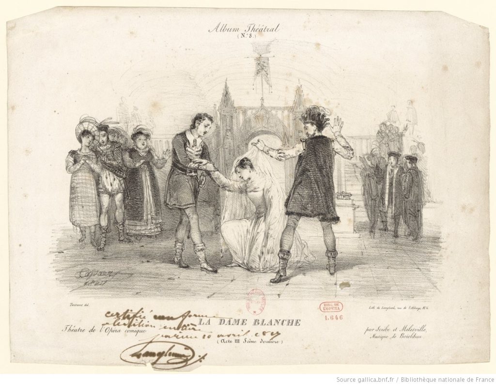 La scène finale de La Dame Blanche : Octave Tassaert (1827) © BNF