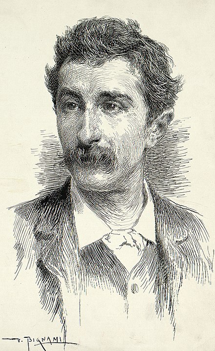 Ferdinando Fontana naît à Milan en 1850 dans une famille où l’art occupe une place essentielle (son père et son frère sont artistes peintres).  Il commence sa carrière comme copiste au Corriere di Milano, avant se tourner vers le journalisme et la littérature. Il publie des ouvrages ressortissant à des genres on ne peut plus variés (articles, guides de voyages, poèmes,…), avec une prédilection pour les livrets d’opéras : il en écrivit plus d’une quarantaine, le plus souvent pour des musiciens aujourd’hui plus ou moins oubliés. Il est surtout resté célèbre pour avoir écrit les livrets des deux premiers opéras de Puccini (Le Villi et Edgar), pour avoir adapté La Haine (Odio) de Victorien Sardou (Ponchielli, après Offenbach, aurait dû en composer la musique), et pour avoir traduit plusieurs livrets d’opérettes viennoises (La Veuve joyeuse, Le Comte de Luxembourg,…).
