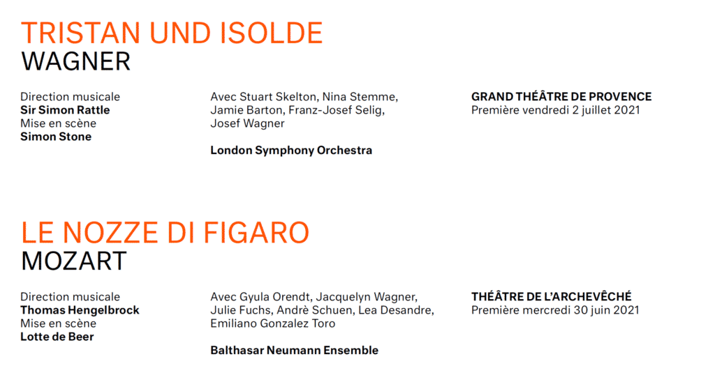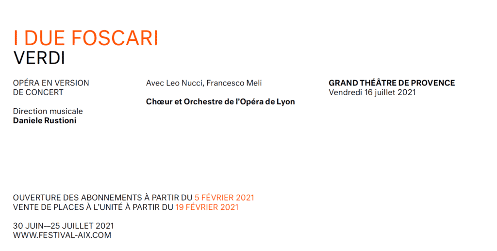 Les abonnements seront ouverts à partir du 5 février 2021, la vente des places à l’unité à partir du 19 février 2019 : WWW.FESTIVAL-AIX.COM