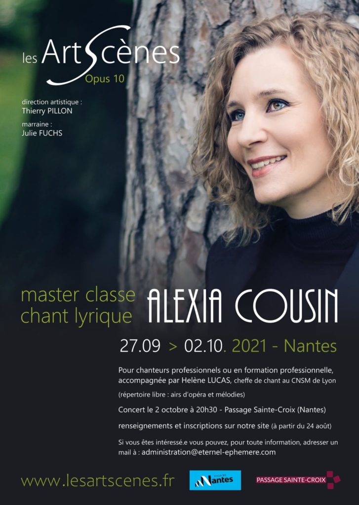 Si Alexia Cousin s’est retirée des scènes, d’une façon tout à fait inattendue et pour le désespoir de ses nombreux admirateurs, elle n’a pas pour autant tout à fait renoncé à l’art lyrique : passionnée par la transmission, elle donne dorénavant des cours de chant, comme on peut le découvrir sur son propre site internet.
