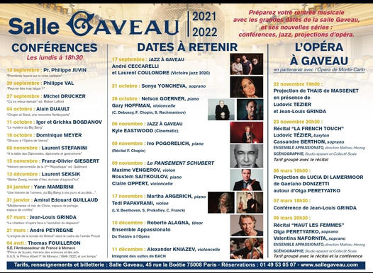 La Salle Gaveau fait sa rentrée en beauté en perpétuant sa tradition d’excellence et en lançant de nouvelles séries (conférences – projections d’opéras – série jazz – série famille).