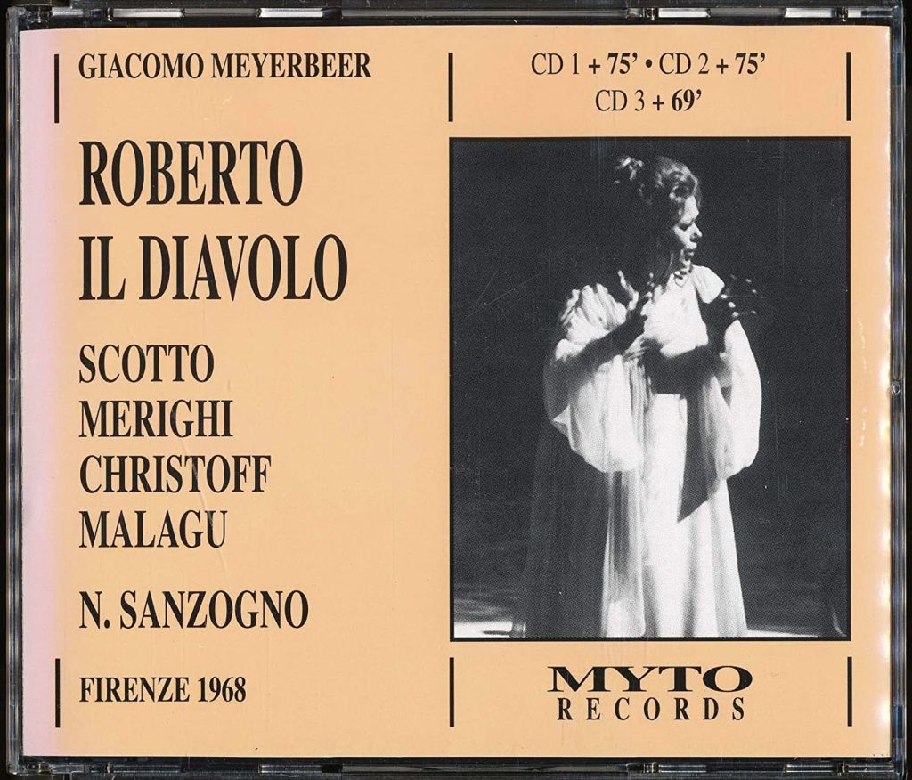 Giorgio Merighi, Renata Scotto, Boris Christoff, Stefania Malagù. Orchestre et chœur du Maggio Musicale Fiorentino, dir. Nino Sanzogno (3CD Mytho Records, 1968).