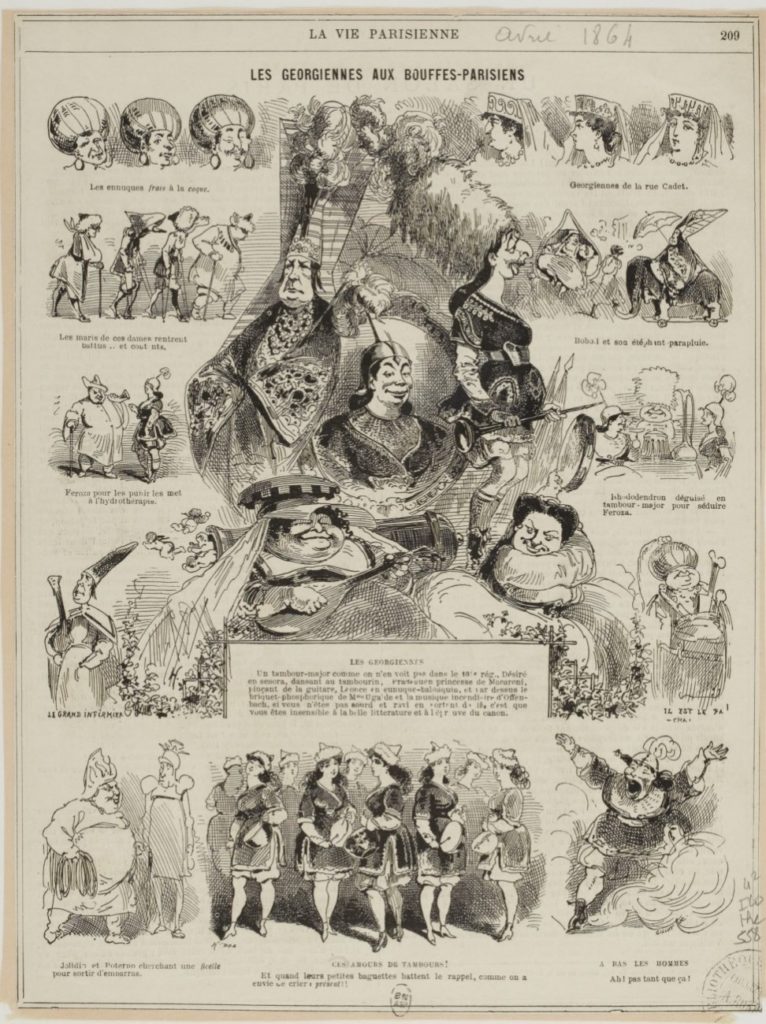 et plusieurs débutantes. Pradeau, Désiré, Léonce, Edouard Georges, Duvernoy et Desmonts, joueront aussi dans les Géorgiennes, pour lesquelles rien n’aura été épargné. (Gazette musicale de Paris, 6 mars 1864)