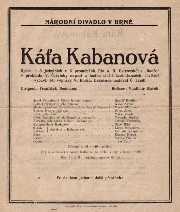Il y a 100 ans était créé l’opéra de Janáček Katia Kabanová, au Théâtre National de Brno, avec František Neumann à la baguette et Marie …